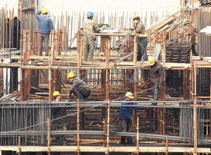 昨日,新客站东广场上,300多名建设者为保证新客站东广场7月1日达到使用条件而忙碌。目前主体工程已经完成90%,预计到2月底完工,进入地下工程装修和地面铺装。