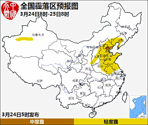 中国网3月24日讯 据中央气象台消息北京天津石家庄有中度霾 需尽量减少室外活动。