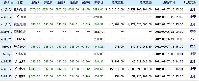 9月7日上海黄金交易所行情