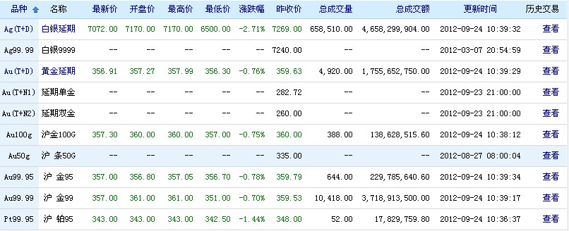 上海黄金交易所行情